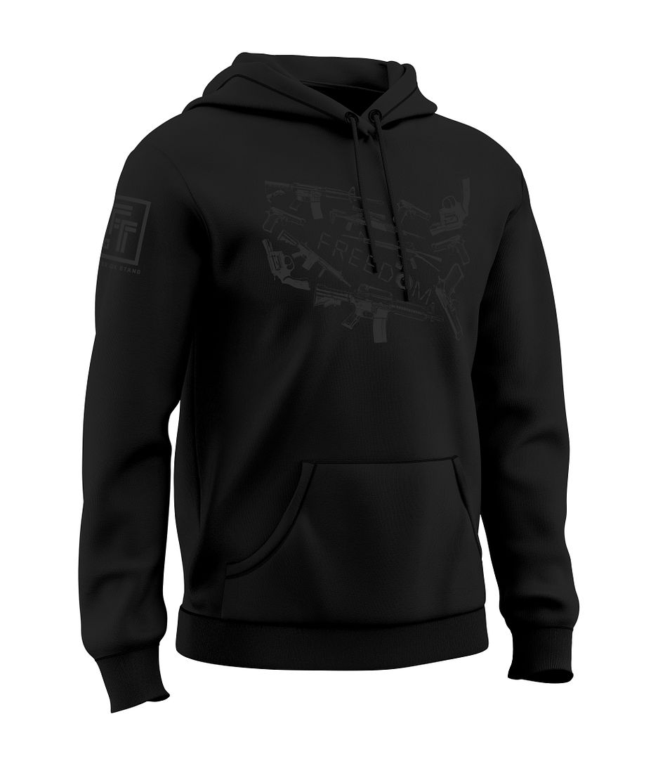 Built for quiet strength, this hoodie reimagines the U.S. map each state formed from detailed firearm silhouettes crafted in a single-tone design that blends seamlessly into the fabric. It’s a subtle yet deliberate tribute to the Second Amendment and the belief that freedom endures through resolve.